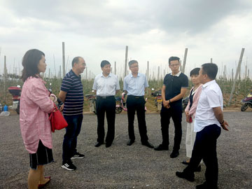 2019年10月7日,渭南市委书记魏建锋、市政府副市长杨武民、市委秘书长朱福俊、白水县县委书记周庆文、市扶贫办主任万双社、白水县扶贫办主任许刘保及相关领导莅临白水华圣苗木基地参观调研,安博web版登录入口(以下简称“华圣农业集团”)副总经理杨洋全程陪同讲解。魏书记一行参观了白水华圣高标准矮砧密植苹果示范园及苗木繁育基地,杨总汇报了基地建设情况、扶贫带动情况以及公司未来发展规划,并对公司从品种选育、示范园建设、脱毒苗木繁育、物流园建设以及扶贫模式等各个方面作了详细的介绍。 魏书记一行对华圣农业集团在白水的发展情况及扶贫带动情况给予了充分的肯定,并希望华圣能够充分发挥国家级龙头企业优势,扩大建设规模,将现代化矮砧密植种植模式快速推广,并不断探索发展苹果深加工产业,提高产品附加值,拓展农产品市场占有率,实现苹果产业化全产业链覆盖,聚焦产业扶贫,带动果农脱贫致富,实现产业兴旺、乡村振兴。