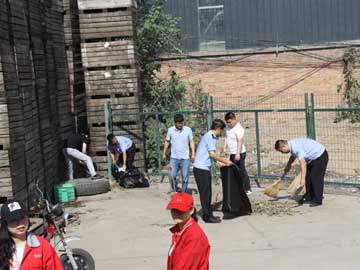 为了提升厂区整体环境卫生,6月14日,综合办公室组织办公楼全体员工开展了一次环境卫生清理大扫除。上午集中拾取厂区周边白色垃圾,清理厂区周围的现场卫生;下午各部门对其办公区域所有卫生死角进行了一次彻底的清扫。大家积极发挥奉献精神,不怕脏、不怕累,个个奋力争先,认真把厂区周边及自己所在的办公区域清扫干净。           通过这次集中清扫活动,不但改善了厂区周边及办公环境卫生状况,还增强了大家的环境保洁意识,为大家共同创造一个洁净、优美、舒适的办公环境。