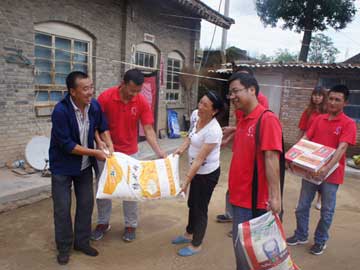 华圣三农力量助受雹灾果农重拾信心         5月初以来,延安市13个县区先后遭受冰雹、短时强降雨和大风灾害,特别是7月15日,延长、宜川等县遭受严重风雹灾害。据当地果农描述,冰雹最长时间持续半个多小时,大的犹如鸡蛋。一些果园苹果和树叶被冰雹打落满地,只剩树干和部分树枝,还有的果树树皮被冰雹剥落,果树被暴风卷倒、连根拔起,致使受灾果园大面积绝收,苹果产业受损严重。据了解,截至7月18日,延安市13个县区共70多个乡镇受灾,各类作物受灾面积10.71万公顷,绝收面积2.38万公顷,造成直接经济损失约30亿元,其中农业损失就达26亿多元。         面对严重风雹灾情 华圣三农伸援手       针对今年风雹灾害频繁且严重的情况,延安华圣三农公司积极践行 “服务农民、服务农村、服务农业”的宗旨,不忘自身担负的社会责任,上下齐动员,及时伸出援手,努力投入到帮助受灾果农抗灾减损、重拾信心,尽快渡过难关的行动中。       公司一方面积极组织货源,免费向受灾果农发放果树修复及杀菌促生长农药,并免费向重灾户赠送米面等生活必需品,帮助果农恢复生产、稳定情绪;一方面派出农技人员和基层服务员深入受灾果区开展技术指导及灾后果园管理培训工作,教授果农防灾救灾知识,动员果农采取及时剪除伤残枝及无商品价值的伤果、扶正固定歪斜果树、喷洒杀菌剂和叶面肥并追施有机肥等办法应对灾害,使果树尽快恢复树势,减轻损失。       据不完全统计,截至目前,华圣三农公司已为遭受风雹灾害的果农免费提供各类农药4000余瓶,送米面60余户近5000斤,赠送果园灾后补救措施宣传资料10000余份,价值近6万元。同时,派出技术老师940余人次,入户进园指导果农加强果树灾后管理,为明年果园正常生产奠定基础。 在此,特别鸣谢山西阳煤集团丰喜复肥分公司总经理刘广荣、副总经理卢国强为华圣三农公司组织救灾提供赞助,刘总、卢总为此专程从山西赶到陕西,商谈赞助相关事宜。   华圣三农兵分三路 慰问受灾果农       “7•15”宜川、延长严重风雹灾害发生后,华圣三农公司管理层立即向受灾区域总站人员了解当地灾情,随即就作出部署,要求受灾地区总站立即派技术人员和服务员深入受灾果区,了解灾情,掌握果农受灾第一手资料,并尽快制定出帮扶措施。同时,公司决定派出三路人员,分别由公司副总经理张林、总经理助理王建超、宜川大区经理段海涛带队,带着米面等慰问品及灾后补救措施宣传资料,深入宜川、延长风雹灾害重灾区农户家中,送上三农公司对果农的关心和慰问。       华圣果业公司副总经理刘俊宏说,作为涉农企业,我们公司就是要担负起自身的社会责任,想果农之所想,急果农之所急,不仅帮助他们增产增收、发家致富,还要在他们需要的时候站出来,帮助他们重拾信心,渡过难关,让果农感受到在灾害面前,华圣三农公司对他们始终如一的关心和帮扶。       7月20日上午,副总经理张林带队的一路人马先后来到灾情较重的宜川县秋林镇合兑村、良子伸村、屯里村、左家村等果区,仔细询问果农在这次风雹灾害中的受灾情况,了解果树受灾面积、苹果受灾程度及损失情况,并将一袋袋慰问品及灾后补救措施宣传资料送到果农手中。       在秋林镇合兑村,尽管“7 •15”风雹灾害已过去4天了,但在该村村民刘玉荣的果园看到,果树上稀稀拉拉地挂着一些果袋,不少果袋已被冰雹砸烂,露出疤痕遍体的苹果,地里散落着很多套袋、烂果子和枝叶。提起几天前的那场冰雹,刘玉荣仍心有余悸。他说:“当时的冰雹有青皮核桃大小,打得人根本就不敢出门。等到冰雹停了到果园一看,真是惨啊!地上到处都是被打下的烂套袋、烂苹果,有些树连叶子都打没了,树身、树枝伤痕累累,果子所剩无几。一家人的心血都在这12亩果园里,这一下什么都没了。”       张林一行将慰问品送到刘玉荣家中,嘱咐他尽快振作起来,按照技术老师的指导和灾后果园补救措施,积极开展生产自救,努力将灾害损失降到最低程度。       看到华圣三农公司领导专程为自家送来慰问品,并一再提醒抓紧做好灾后补救工作,刘玉荣感激地说:“你们作为一家企业,能在果农遇到天灾时,第一时间帮助我们振作精神、重拾信心,我们很感动!你们是一家有责任的好企业!”         教师“果农”赋诗赞华圣       7月20日上午,由华圣三农公司总经理助理王建超带队的慰问组先后到宜川县云岩镇西良村、马圪瘩村、永宁村、皮头村、南苏村等果区慰问了果农。       今年56岁的南苏村果农公麦亮是位待退小学教师,也是华圣三农公司的基层服务员。他家种了20亩苹果,春季以来先后遭遇大小四五次风雹袭击,特别是7月15日这次最严重,果子基本上被打光了,剩下的果子也成不了商品果,只能是卖给果汁厂了。看到公司为自家送来了慰问品,并派农技人员上门进园进行技术指导,他即兴赋诗一首表示感谢:         华圣三农这多年,六县一区转得圆。       千村万户标准园,亩产万斤把梦圆。       技术服务进田间,农资服务把关严。       遭灾弃管把工烂,不如补救看长远。       人定胜天渡难关,认可华圣赚大钱。       与此同时,华圣三农公司宜川大区经理段海涛也带领一路人马,赶赴延长县交口镇、七里村镇等风雹灾害严重的果区,为受灾