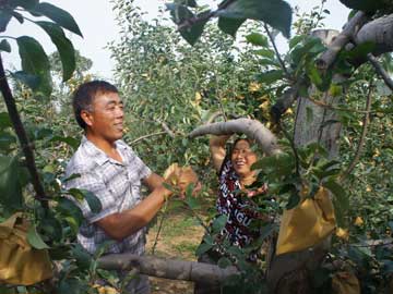 ——华圣果业示范户周玖林翻身记       富县羊泉镇侯家庄村果农周玖林,今年44岁,自家种植了5亩苹果园,5年前又承包了同村一村民管理不善的5亩残败果园。凭着勤快肯干的劲头,在华圣三农公司农技人员的指导帮助下,科学管理,技术务果,取得了意想不到的收获——残败果园起死回生,果品质量连年提升,苹果成了香饽饽根本不愁卖。这几年,靠着卖苹果挣得钱,家里不仅购买了冰箱、空调、电脑、小轿车,还供大女儿上了北京的一所艺术学院学习影视表演。用他的话说,同样是种苹果,同样起早贪黑,自己摸“黑干”与有专业技术人员的“指点”,真是两重天啊! 为生活 承包村民残败果园       周玖林家住在公路旁,他承包的果园就在路对面不远。7月6日午后,周玖林与妻子宋巧云吃完饭正准备到果园劳作,看到华圣三农公司的农技人员来访,连忙向屋里让。老周个子不高,黑黑的脸庞,精壮的身体,一看就是常年在田里劳作的好手。一说起这么多年种苹果、特别是在华圣三农公司的帮助下靠科技务果的经验,有些腼腆的他就打开了话匣子。       从1993年起,周玖林就跟着村里的人开始种苹果树了。起初他啥也不懂,黑着头种,技术不会,管理不行,等苹果开始挂果,已是六、七年以后了。那时的果子品质不好,个头也小,根本卖不上价。农闲时,只好到外边打工养家。就这样到了2010年,已是3个孩子父亲的周玖林迫于生活压力,承包了同村一村民家的5亩果园。那时,这片果园因管理不善,果树残败、树干腐烂多,枝叶稀落,结的果子个小难卖。       第二年开春果树发叶,看着邻家地里的果树叶子黒明油亮,花蕾竟放,而自家的果树叶子瘦小发白,结果枝稀少,周玖林暗下决心:凭着自己扎实肯干的劲头,一定要改变现状,让这片果园强健起来。       依靠务果十多年所积累的经验,周玖林夫妇开始了用“土方法”对这片果园进行改造,他俩翻地、除草、施肥、剪枝、疏花、拉条……把全部精力都用在了果园里,但效果却不是太明显。2011年,夫妻俩在果园套袋2万个,苹果卖了2万多元;2012年,又套袋4万个,收益仅有4万元。看着别人家的果园不论从树形、树势,还是从结果量、商品果率等方面都比自家的强,周玖林有点茫然——一样的施肥打药,一样的剪枝拉条,一样的辛苦劳作,怎么自家果园的产量和果子品质咋就上不去呢?   遇华圣 终于打了翻身仗       2013年,周玖林这片5亩果园,被华圣三农公司富县总站选定为果树残败园改造示范园。针对这片树形差、树势弱、病残树多的残败果园,华圣农技人员制定了详细的果园改造计划,定期不定期地深入果园现场调研观察,随时把握果树不同阶段的生长情况。根据果园现状,指导周玖林夫妇从过去单一的施肥转代为华圣配方施肥,改变果园土壤结构,提高有机质,增强果树的抗病能力,培养强树势。同时,通过强拉枝促成花、培养松散下垂结果枝组,提高挂果率,逐步扭转了果树的“体质”,取得了良好的回报。当年,这片果园套袋5万个,收入5万多元;2014年,套袋9万个,获益9万多元;去年,在苹果遇小年的情况下,套袋5万个,收入却达到7万多元,且苹果个大色好,商品果率达90%以上。       前年秋季收果,一位山东果商在周玖林家摘下的苹果里挑挑拣拣。周玖林说:“你不用挑,咱的果子个个都一样。”果商不信,周玖林就带他到果园参观。在整个果园转了一圈后,果商信服了,说:“你的果园还真是没有次品果啊!”随后,该果商以高出平均价将周玖林家的苹果全部收购。去年,周玖林家的苹果还在树上就被外地果商订购了。       采访中看到,在周玖林家果园地头建有一个地下果库,库门紧锁,门上的铆钉已锈迹斑斑,台阶上长了草,看出是好长时间不用了。周玖林说:“以前的苹果品质不好,果商不愿意多收,只好就地存进果库再想办法卖。2013年以后,这个果库基本用不上了,果子在树上就早早被客商看中了,卸果就拉走。所以,果库就闲下啦。”        地还是那块地,树还是那些树。在华圣三农公司农技人员科学务果技术的帮助下,周玖林家这片残败果园被逐步改造成了盛果园,效益逐年增加,现在的承包费已从头一年的800元,涨到了去年的1600元,翻了整整一倍。   靠务果 他供女儿北京学表演       周玖林介绍,以前家里靠种地和种植少量果树,一年到头根本挣不来几个钱。“那时家里真是没有啥啊!”周玖林说他1995年结婚分家时,就分到了一口锅和几件简单的家具,日子一直过得紧巴巴地,直到县镇政府号召农民大力种植苹果树,生活才有所好转。近几年来,凭着自己勤劳的双手和华圣三农公司的技术帮扶,周玖林家已是走上小康路了:家里翻修了房子,不仅添置了冰箱、空调、电脑等家用电器,还购买了小轿车和一些农用机械。同时,还供养着3个上学的子女。特别是今年20岁的大女儿,2014年考上了北京一所艺术学院学习影视表演,每年的花费都在数万元。周玖林算了一笔账:2012年,家里的10亩苹果卖了10万元,2013年卖了12万元,2014年卖了18万多元,去年遇苹果小年也卖了14万元。他说:“如果这几年没有华圣公司农技人员的帮助,使咱的残败果园焕发新活力,家里根本买不起小车,用不上空调、电脑,更谈不上供娃到北京上学啦!”   谈经验 科技+勤快       说起这些年来的务果经验,周玖林只说了两点:科技+勤快。       勤快,就是不嫌麻烦,不怕