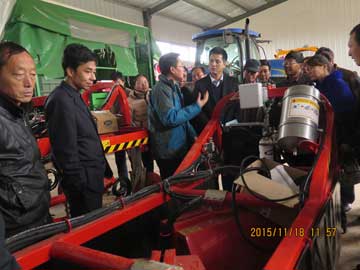 12月23日,陕西省农村网记者、千阳县电视台一行深入宝鸡华圣公司基地进行新闻采访。 记者一行在基地负责人的陪同下来到展示园内,此时正值公司开展果树冬季修剪工作,记者看到4名技术人员在修剪平台上对果树进行冬剪,修剪平台配备气剪,每分钟可修剪约16棵果树,工作效率极高给人留下深刻印象,记者对现场进行了影像拍摄。随后,记者采访了基地负责人,就基地建设情况、苗圃和果园栽培管理技术进行详细了解。最后,一行人观摩了公司引进国外的先进设备,包括:种植机、起苗机、起垄机、除草剂机、采收平台等,并一一对设备功能特性进行介绍,设备精良,技术先进令人叹为观止。 记者纷纷表示:华圣苗木培育技术从种植、打药、除草、松土、修剪、直到起苗、果实采收全程均为机械操作,果园机械化水平处于国内领先水平!