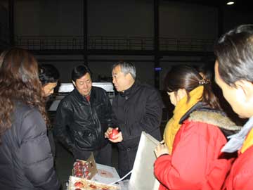 2014年1月15日下午,陕西省委科技工委委员、陕西省科技厅副厅长林黎明在农村处刘新安处长陪同下来我公司考察调研,在华圣集团总经理王魁的陪同下先后视察了公司果品加工车间、气调保鲜库、陕西省果品采后处理与贮藏保鲜工程技术研究中心,对果品加工过程中采取的质量保障高度关注,详细询问了公司运用的臭氧消毒系统和果品农药残留检验措施;对公司果品产销的全产业链的跟踪追溯系统予以高度肯定,指出企业责任对今后农业发展的重要性。       在随后进行的座谈会上,王魁总经理就公司成立以来在苹果产业发展方面所起的作用、陕西省苹果产业面临的形势、公司今后的发展方向等,对林副厅长一行做了详细汇报。林副厅长对我公司在果业领域的龙头地位和取得的成就给予赞赏和肯定,提出由企业牵头建设农业科技园区的构想,表示省科技厅在今后农业科技项目支持上,加大对校企合作模式的科技示范工作,重视选聘企业优秀的科技特派员,并希望公司大胆探索、勇于实践,进一步推动陕西苹果产业发展,提高陕西苹果在国际上的竞争性。