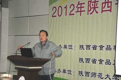 由陕西省食品科学技术学会、陕西省食品工业协会主办,陕西师范大学食品学院承办的“2012年陕西省科学技术学会学术年会”于2012年12月1-2日在陕西师范大学崇鋈楼学思堂举行。参加本次年会的有陕西师范大学食品学院、西北农林科技大学食品学院、陕西科技大学食品学院及西北大学生科院的从事食品科学领域研究的专家、教授。本次学术年会注重校企合作交流,特邀陕西华圣果业公司、陕西海升果业公司等陕西食品界有影响企业出席。我公司总经理助理佘均安、品质部经理赵彦华出席了本次年会。 本次年会是陕西食品科学技术学会连续第二年举办的科学年会,两天的会议集中了陕西的近90位最顶级的从事食品科研教学的专家教授,收集提交的最新论文20余篇,每天上午各有10位专家教授,各用15分钟时间介绍每人在所从事的领域在这一年内取得的最新研究成果;成果涉及功能植物综合开发利用、苹果无伤检测模型探索、射频加热技术在食品上的应用、苹果汁危害识别控制技术、遗传基因融合蛋白在酵母中的表达、蜂蜜中农残及兽药残留脱除技术研究……会议专家制作的PPT生动严谨,专家演讲趣味生动。