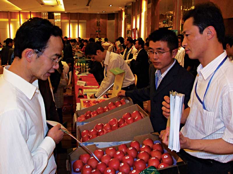 当地时间11月18日,由国家农业部和陕西省政府联合主办的中国(陕西)——欧洲果品企业家圆桌会议,在欧盟总部布鲁塞尔举行。来自中国和欧盟11个国家的农业官员、果品贸易商、国际知名超市、果品产后加工处理设备供应商等企业的一百五十多名代表参加了这次圆桌会议。华圣果业公司总经理王魁,副总经理彭小强作为陕西省鲜果行业的龙头企业——华圣果业公司代表,随队赴布鲁塞尔出席会议。 农业部副部长张宝文、陕西省副省长王寿森分别介绍了陕西果业的发展情况和产品优势。会议期间陕西果业促销团还专门设置了独具特色的果品展示台,各个水果企业利用声、图、果类产品多种方式宣传陕西的水果产品。以“华圣果业”为代表的陕西苹果展品充分向国外客商展示了陕西苹果在地理、气象特点、生产规模和绿色生产条件等方面的独特品质。 在品尝了红富士苹果、酥梨、猕猴桃、柑桔等特色水果后,欧洲各大商品贸易商、知名超市对我省的水果产生了浓厚的兴趣。在下午举行的签约仪式上,我省共签订合同15个,总金额达1.1亿美元。苹果销售合同共计1.5万吨,其中陕西华圣果业成为本次签约仪式上的最大赢家,共签订苹果销售合同8000吨。我省苹果首次大规模进军欧盟高端市场取得了实实在在的成绩,也为今后陕西水果全方位进军欧盟市场打下了良好的基础。