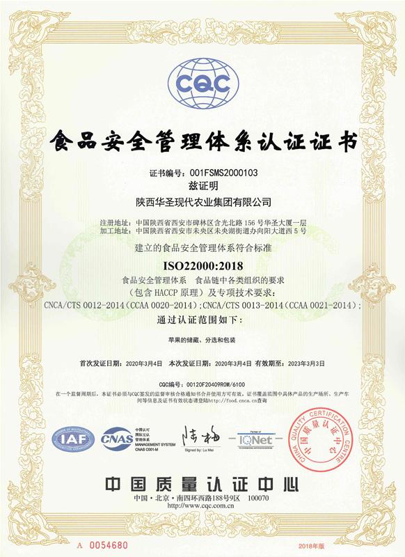 食品安全管理体系证书