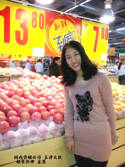 京津大区销售经理袁慧,到公司已经两年多了,她在京津区人力不足时,挺身而出,独自挑起开发天津市场的责任,她日以继夜,放弃休息,终经多番市场搏杀,为我司产品在天津打开销路,成功开发天津家乐福系统。工作中她勤勤恳恳,不计较个人得失;她努力学习,不断提高业务能力;她团结同事,在团队中是我们不可或缺的伙伴,她是我们的骄傲。