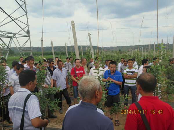 2014年7月11日,由宝鸡市科协组织,来自宝鸡地区及甘肃礼县的近百名果农在宝鸡市科协王主席及西北农林科技大学李丙智教授的带领下参观了宝鸡华圣苹果基地,基地负责人向大家介绍了宝鸡华圣果业公司苹果基地建设情况。