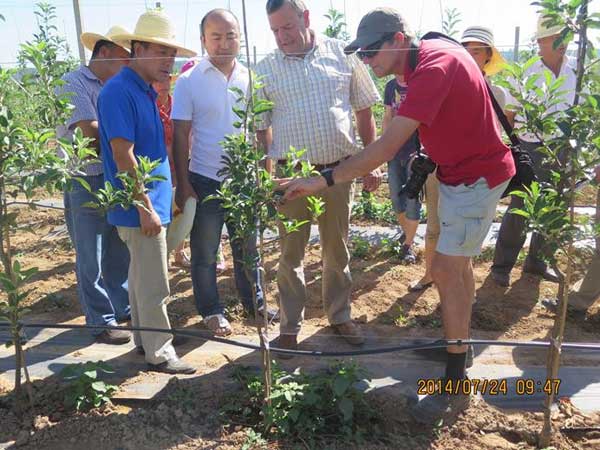 7月23-24日,欧洲最大的拥有权威资质的规划设计承包商以及苗木供应商之一,荷兰Clootwijck Nurseries公司首席执行官Jan Hak先生及荷兰瓦格宁根大学Frank Mass教授一行5人到宝鸡华圣果业有限责任公司千阳生产基地进行交流指导。